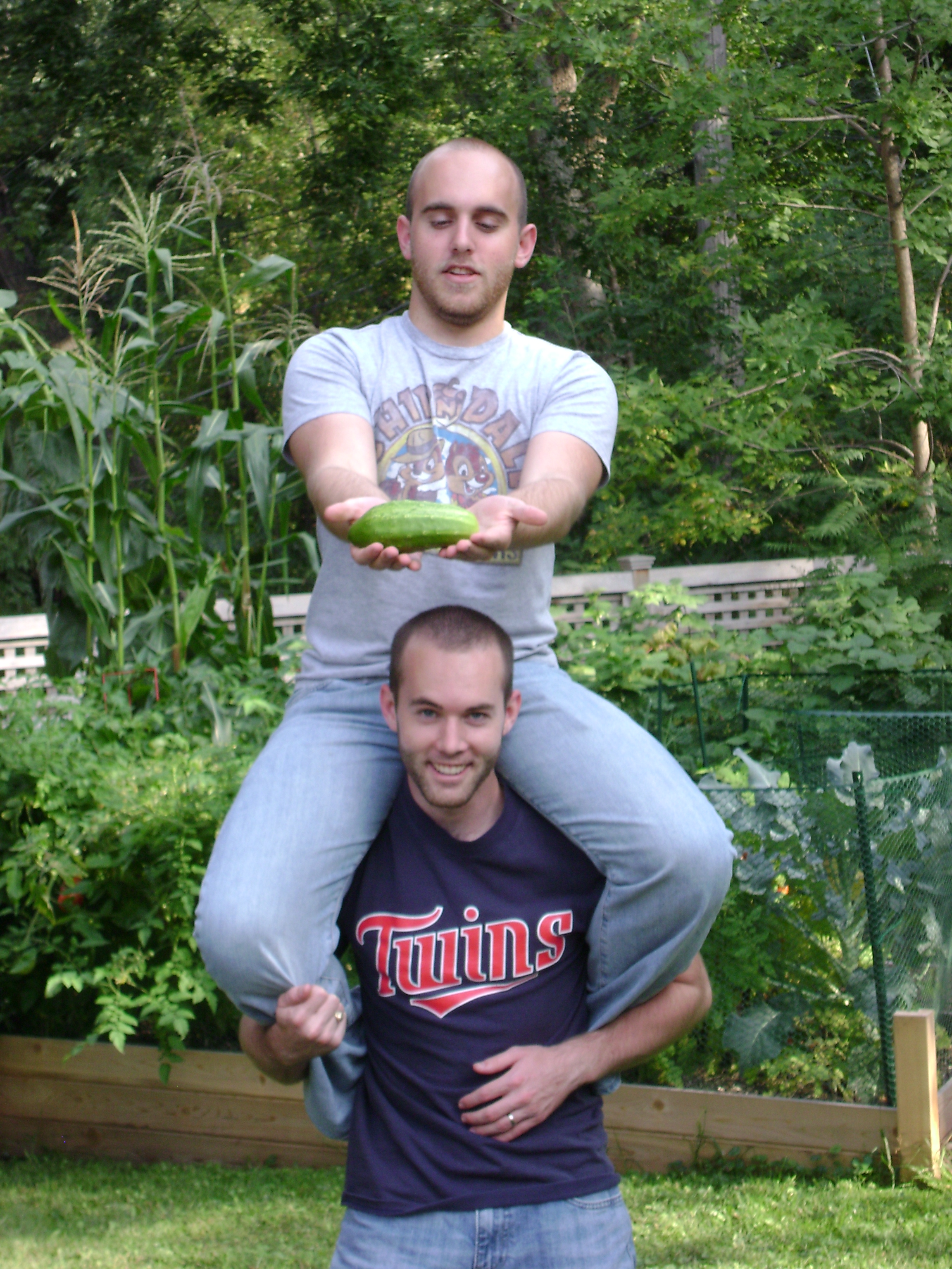On to the squash and melons… This bed is where most of my frustrations came from this summer. It started with squash vine borers attacking the Zucchini. I did some “surgery” slicing into the vine and mutilating the buggers with a knife which allowed the plant to continue producing, but it was never quite the same. Next, some dirty little rats, squirrels or rabbits severed all of the watermelon plants leaving me with next to nothing. Lucky for them I never caught them in the act! Finally, we have more squash vine borers attacking, hence the sickly, wilty leaves, but since it’s so late in the season I’m choosing not to battle them because I’ve already harvested quite a bit of squash. Oh, and Cantaloupe! Well, so far the score is 1-1 Rodentia vs. Us but the one we had was wonderful!